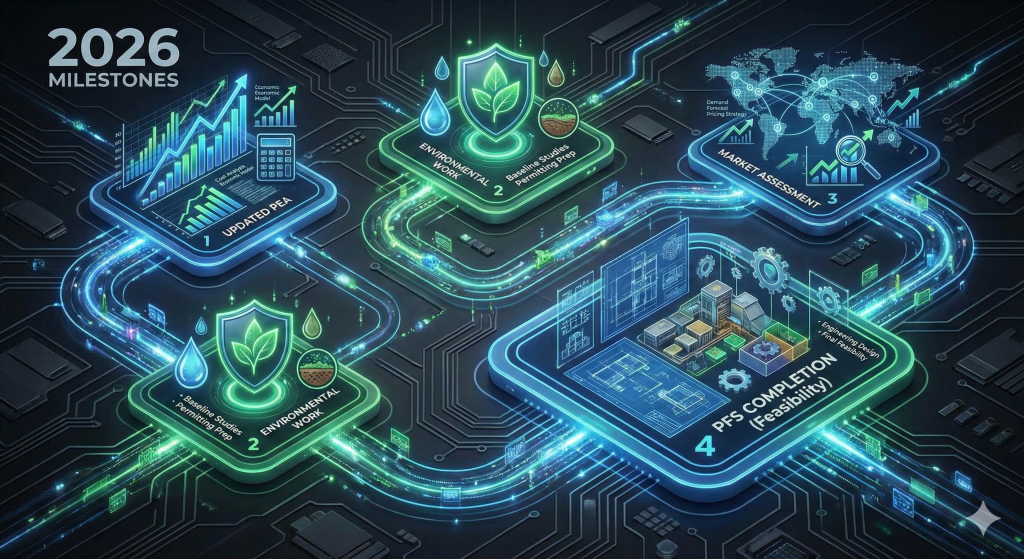 Our focus will be on strengthening the project’s economics, confirming environmental readiness, understanding market conditions, and advancing technical confidence. Together, these milestones support informed planning and responsible development.